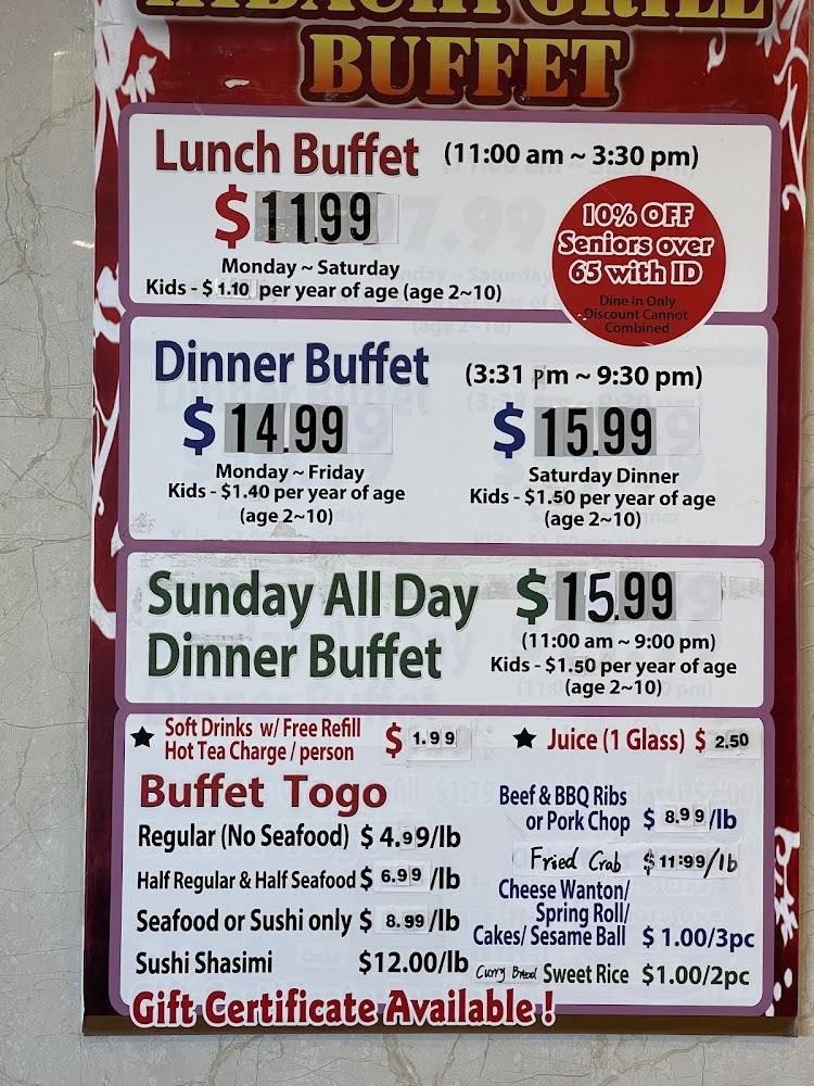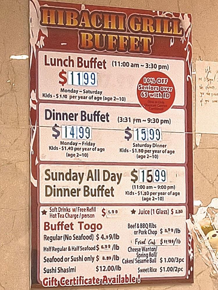 The menu at Hibachi Grill Buffet boasts an extensive selection of both Japanese and Chinese offerings. Customers find sushi, noodles, and grilled specialties available. Signature dishes include flavorful chicken teriyaki and succulent beef with a delightful char. The salad bar provides fresh greens alongside various toppings, catering to health-conscious diners. Small dishes encourage sharing, adding a fun twist to meals. The dessert options, ranging from soft serve to fried sugar donuts, add a sweet end to the dining experience. The menu appeals to all, striking a balance between classic flavors and exciting new tastes.